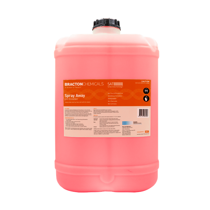 A powerful cleaner and degreaser. Spray away is a non-corrosive formulation that will clean almost any surface free of general build-up, dirt, mould, oil and grease on hard surfaces and engine parts. This product is for use in the chassis was and work shop areas only. Suitable for the cleaning of heavily soiled areas and removal of heavy build-up of grease and oil on hard surfaces and engine parts.